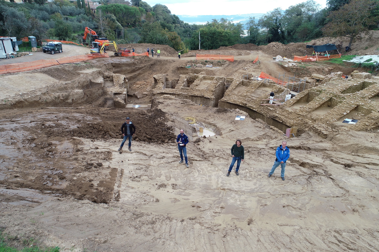 A tale proposito, lo scorso 21 ottobre sono stati eseguiti una serie di rilievi topografici da drone. L’obiettivo è quello di ricostruire la morfologia dell’area di scavo e delle porzioni limitrofe di versante che consente di contestualizzare il monumento nel tessuto della Volterra attuale. I voli eseguiti a bassa quota (15-20 metri) hanno permesso di ricostruire modelli digitali georeferenziati del monumento ad altissima risoluzione.